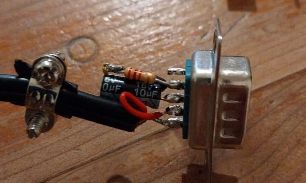 As you can see, it’s a fairly simple interface. In some cases, some hobbyists used an electrolytic capacitor instead of a ceramic one. With a little patience, we can fit everything into a DB9 connector, which would be ideal if your TNC has this type of terminal.